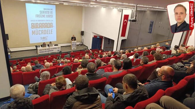 Cengiz’in akabinde SOL Parti’nin “Çıkış yolu ve değişim” programını anlatmak için kürsüye çıkan parti sözcüsü İsmail Hakkı Tombul; “Bir yol ayrımını tanım ediyoruz. Bugünün Türkiye’sini tanım etmemiz gerek. 100 yıl evvel emperyalist işgale karşı kurulan Cumhuriyet; 1947’de ABD’yle yapılan mutabakatlarla başlayan ve sonra 1950, 1990’lı yıllarla birlikte İsrail’in güvenliğini teminat altına almak isteyen Orta Doğu’nun gerisinde ABD, önünde AKP ve MHP olan siyasal İslamcı tek adam rejiminden bahsediyoruz. Bu rejim artık halktan takviye alamıyor, en az yüzde 60’ı gitmesini istiyor. Bu rejim, Türkiye’yi çürümeye ve çözülmeye götürdü. Bu rejim Cumhuriyet’in en değerli ilerici kazanımları olan laiklik, bağımsızlık fikri ve demokrasiyi tasfiye etti. Artık temel çabayı ortaklaştırmamız bir tarihi sorumluluk. Bu tarihî sorumluluğu, hepimizin muhalefet eden kesitleri yerine getireceğine inanıyoruz” sözleri kullanıldı.